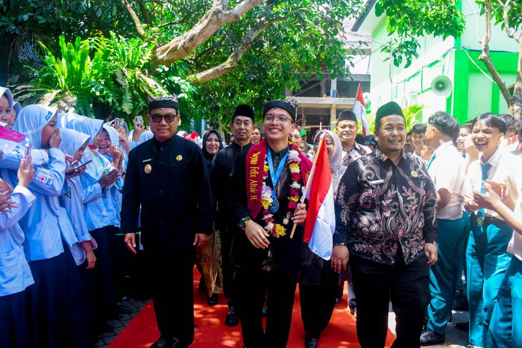 Kedatangan Wakil Bupati Warnai Penyambutan Reyno! MTsN 3 Banyuwangi Bergemuruh untuk Sang Juara Internasional
